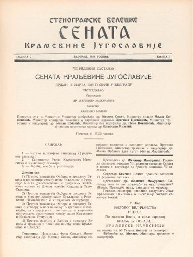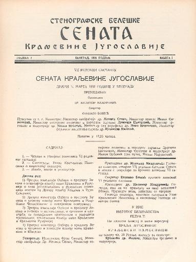SI AS 2058/17, Stenografske beležke Senata Kraljevine Jugoslavije, 1937-1938