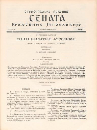 SI AS 2058/17, Stenografske beležke Senata Kraljevine Jugoslavije, 1937-1938