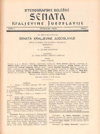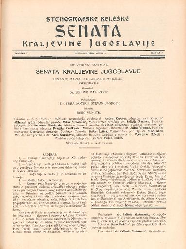 SI AS 2058/17, Stenografske beležke Senata Kraljevine Jugoslavije, 1937-1938