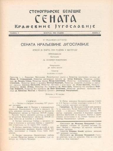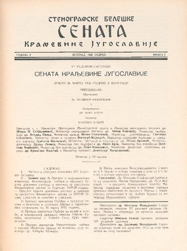 SI AS 2058/17, Stenografske beležke Senata Kraljevine Jugoslavije, 1937-1938