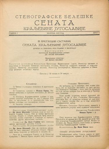 SI AS 2058/18, Stenografske beležke Senata Kraljevine Jugoslavije, 1932