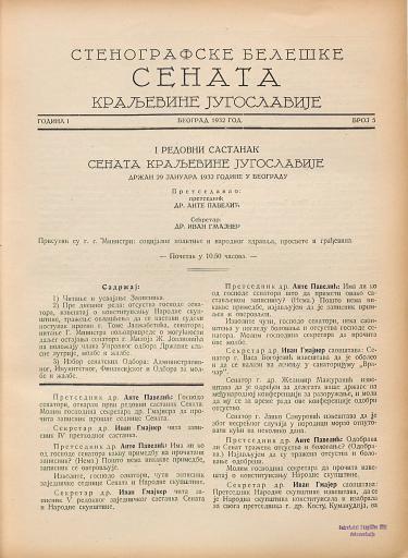 SI AS 2058/18, Stenografske beležke Senata Kraljevine Jugoslavije, 1932