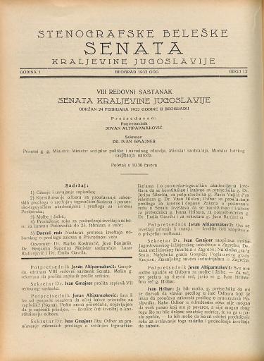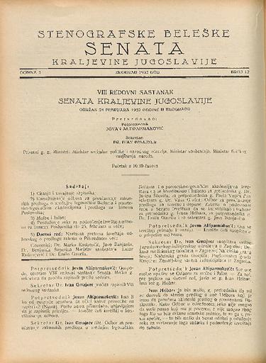 SI AS 2058/18, Stenografske beležke Senata Kraljevine Jugoslavije, 1932