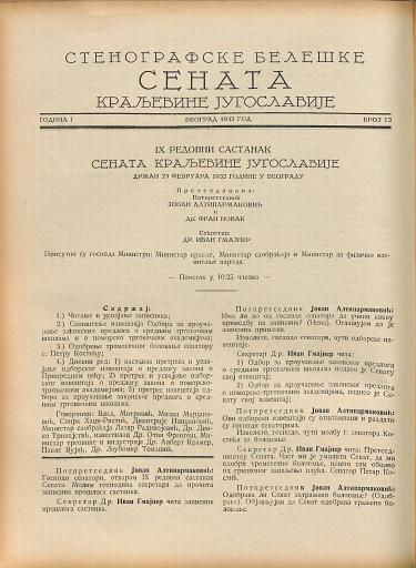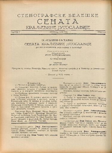SI AS 2058/18, Stenografske beležke Senata Kraljevine Jugoslavije, 1932