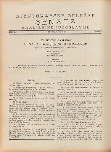 SI AS 2058/18, Stenografske beležke Senata Kraljevine Jugoslavije, 1932