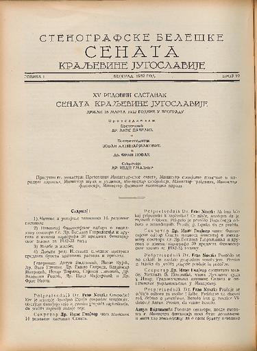 SI AS 2058/18, Stenografske beležke Senata Kraljevine Jugoslavije, 1932