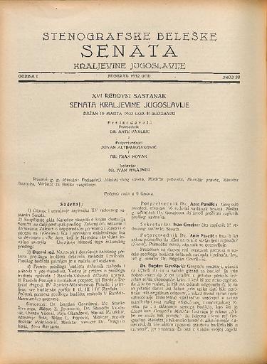 SI AS 2058/18, Stenografske beležke Senata Kraljevine Jugoslavije, 1932