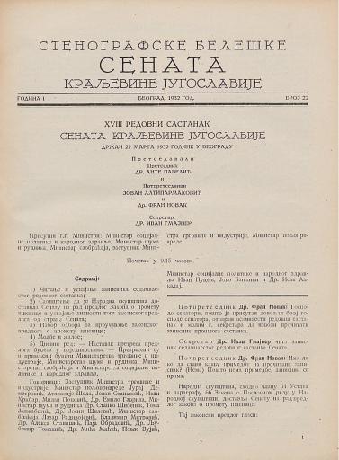 SI AS 2058/19, Stenografske beležke Senata Kraljevine Jugoslavije, 1932