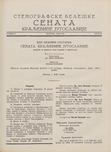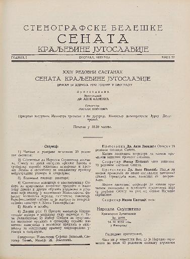 SI AS 2058/19, Stenografske beležke Senata Kraljevine Jugoslavije, 1932