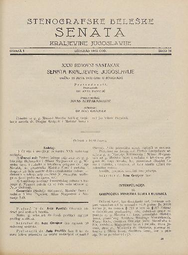 SI AS 2058/19, Stenografske beležke Senata Kraljevine Jugoslavije, 1932