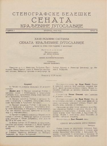 SI AS 2058/19, Stenografske beležke Senata Kraljevine Jugoslavije, 1932