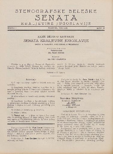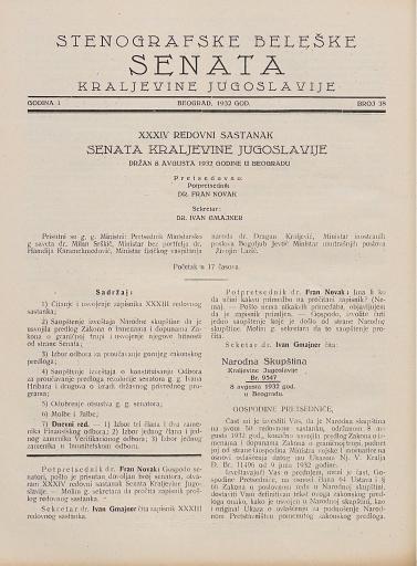 SI AS 2058/19, Stenografske beležke Senata Kraljevine Jugoslavije, 1932