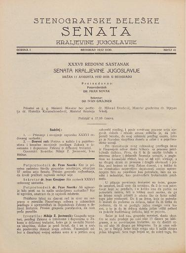 SI AS 2058/19, Stenografske beležke Senata Kraljevine Jugoslavije, 1932