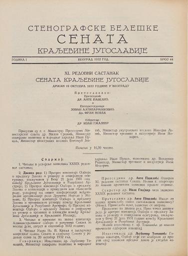 SI AS 2058/19, Stenografske beležke Senata Kraljevine Jugoslavije, 1932