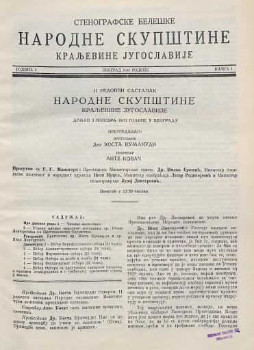 SI AS 2058/21, Stenografske beležke Narodne skupščine Kraljevine Jugoslavije, 1932-1933