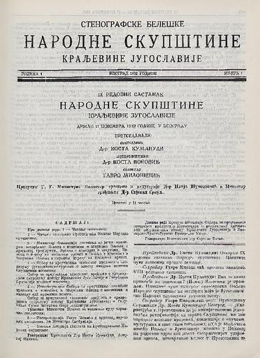 SI AS 2058/21, Stenografske beležke Narodne skupščine Kraljevine Jugoslavije, 1932-1933