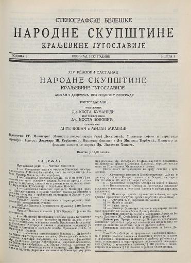 SI AS 2058/21, Stenografske beležke Narodne skupščine Kraljevine Jugoslavije, 1932-1933