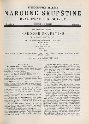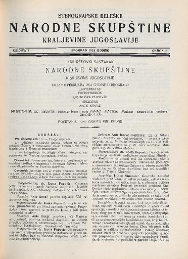 SI AS 2058/21, Stenografske beležke Narodne skupščine Kraljevine Jugoslavije, 1932-1933