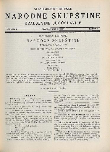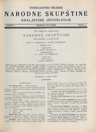 SI AS 2058/21, Stenografske beležke Narodne skupščine Kraljevine Jugoslavije, 1932-1933