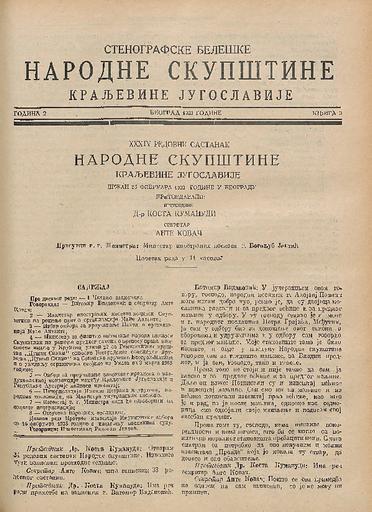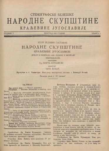 SI AS 2058/21, Stenografske beležke Narodne skupščine Kraljevine Jugoslavije, 1932-1933