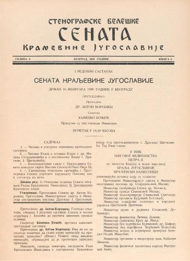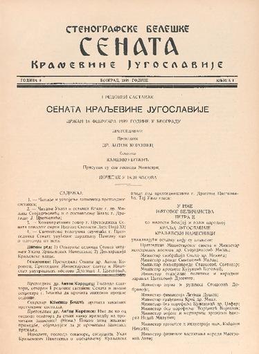 SI AS 2058/20, Stenografske beležke Senata Kraljevine Jugoslavije, 1939