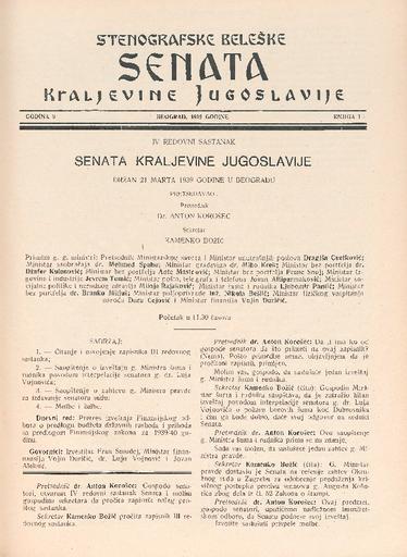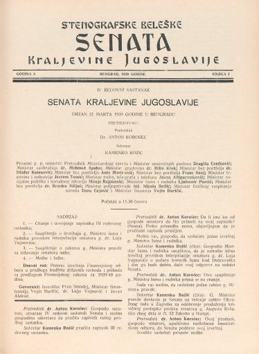 SI AS 2058/20, Stenografske beležke Senata Kraljevine Jugoslavije, 1939
