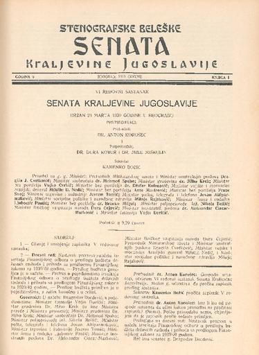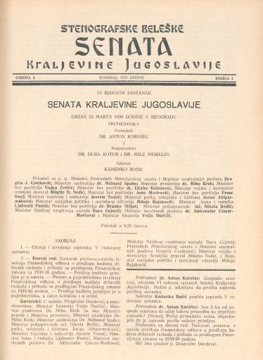 SI AS 2058/20, Stenografske beležke Senata Kraljevine Jugoslavije, 1939
