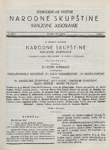 SI AS 2058/22, Stenografske beležke Narodne skupščine Kraljevine Jugoslavije, 1933