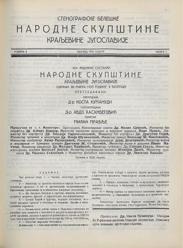 SI AS 2058/22, Stenografske beležke Narodne skupščine Kraljevine Jugoslavije, 1933