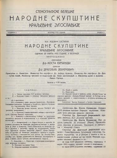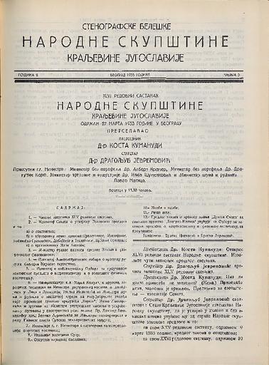 SI AS 2058/22, Stenografske beležke Narodne skupščine Kraljevine Jugoslavije, 1933