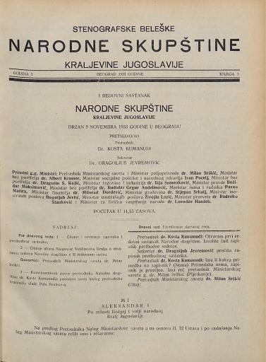 I. redovni sastanak (9. novembar 1933, Beograd)