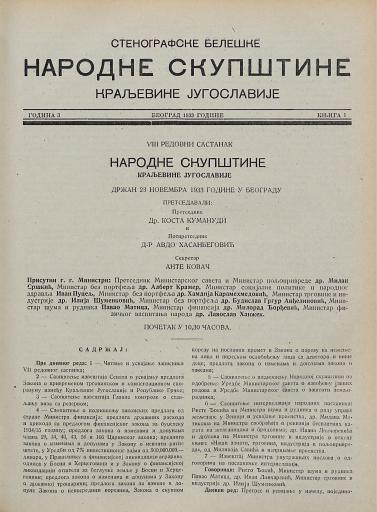 SI AS 2058/23, Stenografske beležke Narodne skupščine Kraljevine Jugoslavije, 1933-1934