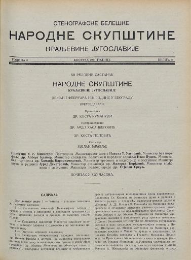 SI AS 2058/23, Stenografske beležke Narodne skupščine Kraljevine Jugoslavije, 1933-1934