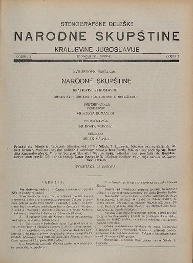 SI AS 2058/23, Stenografske beležke Narodne skupščine Kraljevine Jugoslavije, 1933-1934