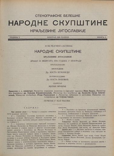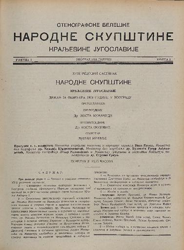 SI AS 2058/23, Stenografske beležke Narodne skupščine Kraljevine Jugoslavije, 1933-1934