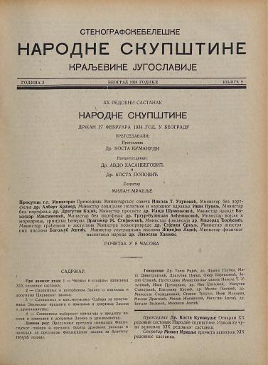 SI AS 2058/23, Stenografske beležke Narodne skupščine Kraljevine Jugoslavije, 1933-1934