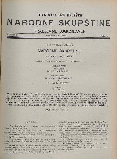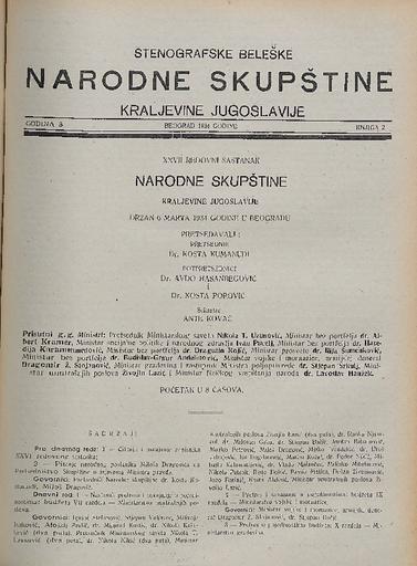 SI AS 2058/23, Stenografske beležke Narodne skupščine Kraljevine Jugoslavije, 1933-1934