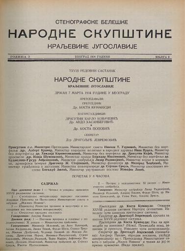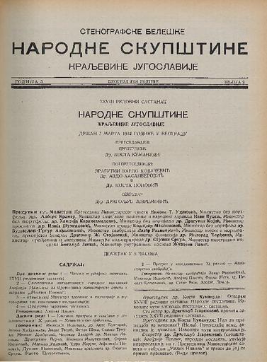 SI AS 2058/23, Stenografske beležke Narodne skupščine Kraljevine Jugoslavije, 1933-1934