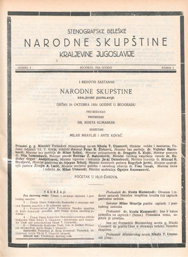 SI AS 2058/25, Stenografske beležke Narodne skupščine Kraljevine Jugoslavije, 1934-1935