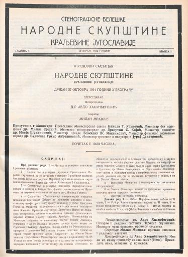 SI AS 2058/25, Stenografske beležke Narodne skupščine Kraljevine Jugoslavije, 1934-1935