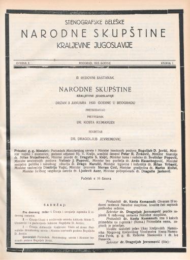 SI AS 2058/25, Stenografske beležke Narodne skupščine Kraljevine Jugoslavije, 1934-1935