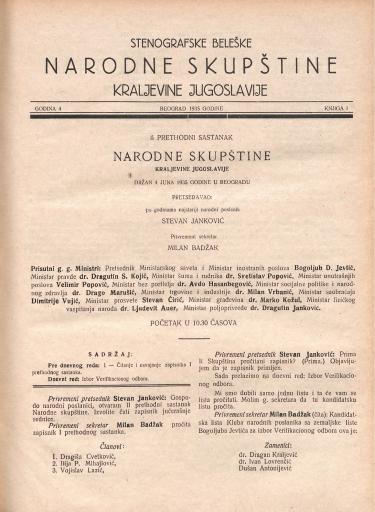 SI AS 2058/26, Stenografske beležke Narodne skupščine Kraljevine Jugoslavije, 1935