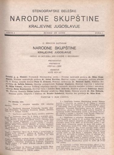 SI AS 2058/26, Stenografske beležke Narodne skupščine Kraljevine Jugoslavije, 1935