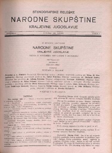 SI AS 2058/26, Stenografske beležke Narodne skupščine Kraljevine Jugoslavije, 1935