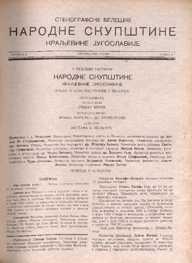 SI AS 2058/26, Stenografske beležke Narodne skupščine Kraljevine Jugoslavije, 1935