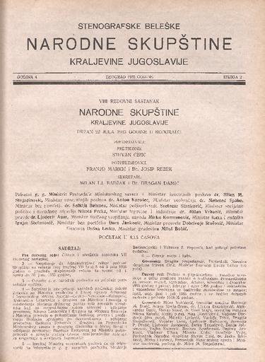 SI AS 2058/26, Stenografske beležke Narodne skupščine Kraljevine Jugoslavije, 1935
