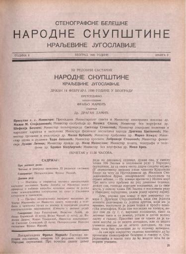 SI AS 2058/27, Stenografske beležke Narodne skupščine Kraljevine Jugoslavije, 1936