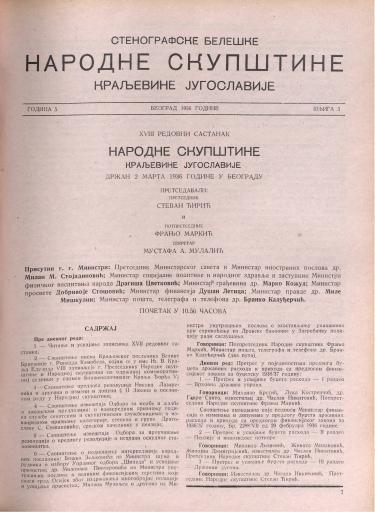 SI AS 2058/27, Stenografske beležke Narodne skupščine Kraljevine Jugoslavije, 1936