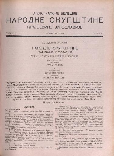 SI AS 2058/27, Stenografske beležke Narodne skupščine Kraljevine Jugoslavije, 1936