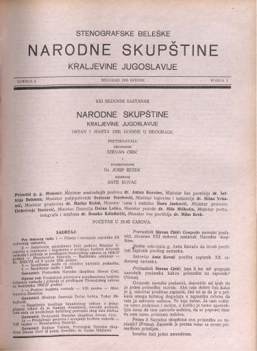 SI AS 2058/27, Stenografske beležke Narodne skupščine Kraljevine Jugoslavije, 1936